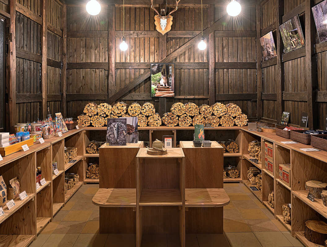 東古屋産の薪(針葉樹・広葉樹・ミックス)から3種類の自家焙煎コーヒー、オリジナルステッカー、氷にアイスクリーム、駄菓子、缶詰、カップ麺、各種燃料類などちょっとした忘れ物にも対応した君嶋林業直営の売店です。