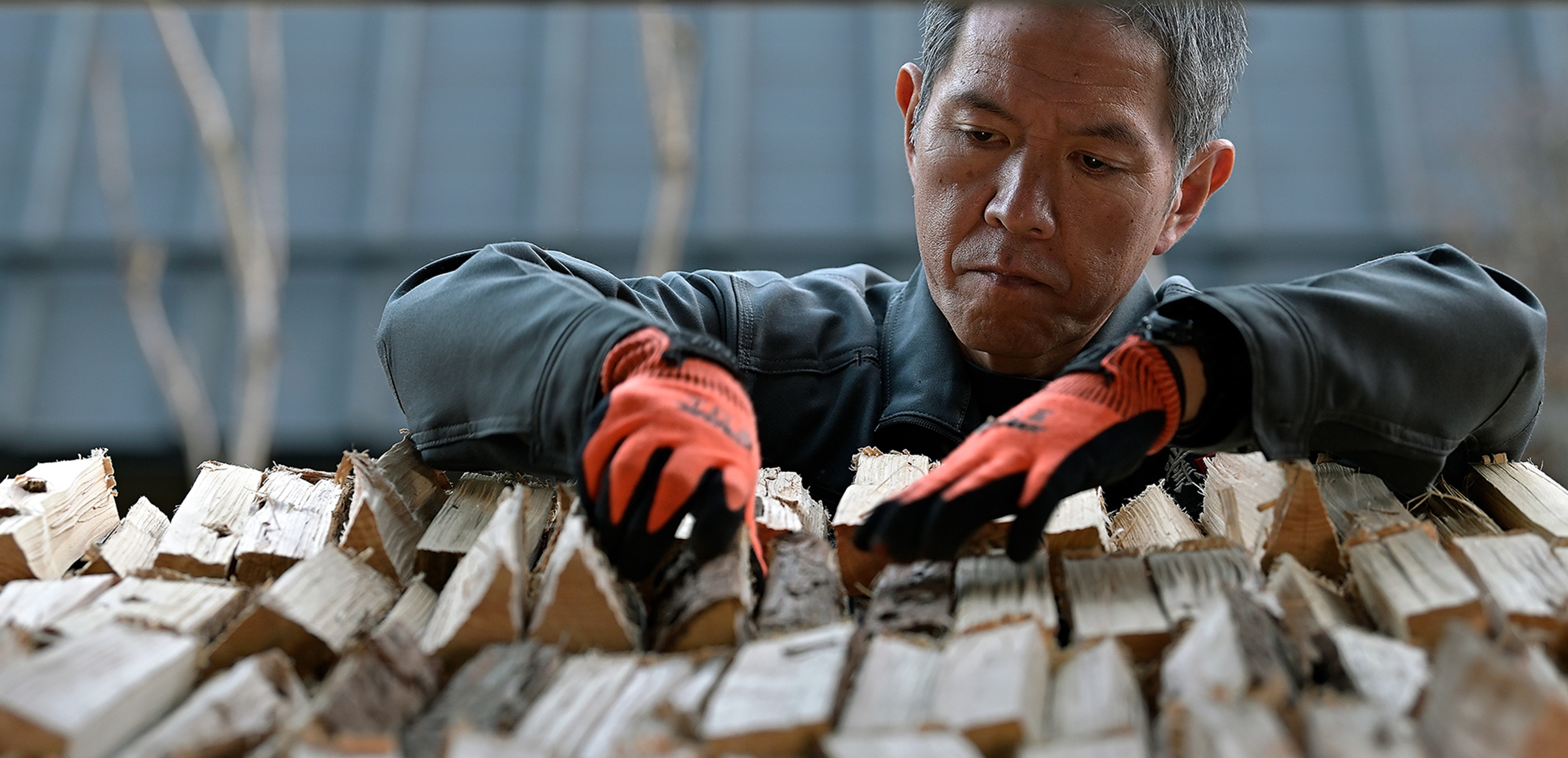 薪を定期的に裏返して均等に乾燥させ、